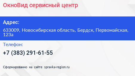 ОкноВид, сервисный центр по адресу 633009, Новосибирская область, Бердск, Первомайская, 123а в дальнейшем Организация, размещена в следующих категориях: