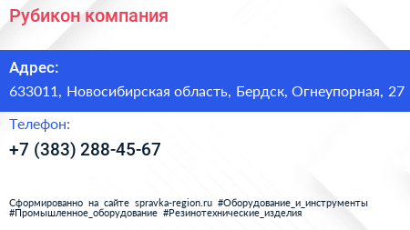 Рубикон, компания по адресу 633011, Новосибирская область, Бердск, Огнеупорная, 27 в дальнейшем Организация, размещена в следующих категориях: