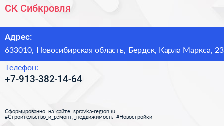 СК-Сибкровля по адресу 633010, Новосибирская область, Бердск, Карла Маркса, 23 в дальнейшем Организация, размещена в следующих категориях: