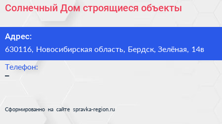 Солнечный Дом, строящиеся объекты по адресу 630116, Новосибирская область, Бердск, Зелёная, 14в в дальнейшем Организация, размещена в следующих категориях: