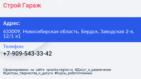 Строй-Гараж по адресу 633009, Новосибирская область, Бердск, Заводская 2-я, 12/1 к1 в дальнейшем Организация, размещена в следующих категориях: