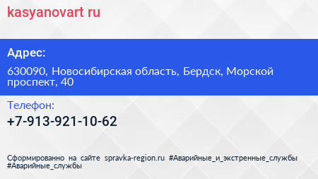 kasyanovart.ru по адресу 630090, Новосибирская область, Бердск, Морской проспект, 40 в дальнейшем Организация, размещена в следующих категориях: