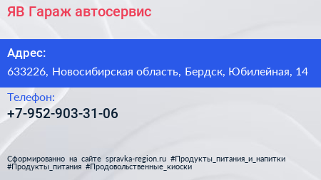 ЯВ Гараж, автосервис по адресу 633226, Новосибирская область, Бердск, Юбилейная, 14 в дальнейшем Организация, размещена в следующих категориях: