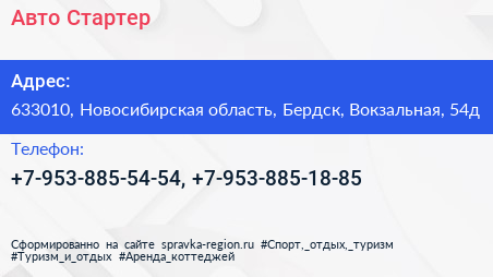 Авто-Стартер по адресу 633010, Новосибирская область, Бердск, Вокзальная, 54д в дальнейшем Организация, размещена в следующих категориях: