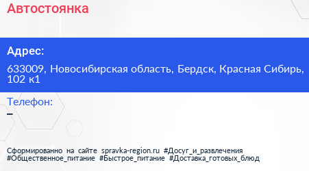 Автостоянка по адресу 633009, Новосибирская область, Бердск, Красная Сибирь, 102 к1 в дальнейшем Организация, размещена в следующих категориях: