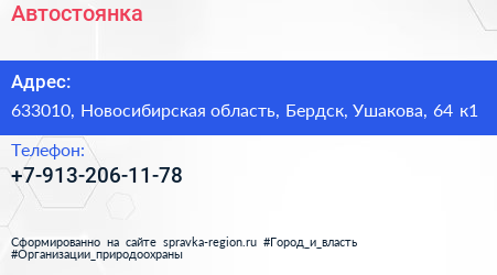 Автостоянка по адресу 633010, Новосибирская область, Бердск, Ушакова, 64 к1 в дальнейшем Организация, размещена в следующих категориях: