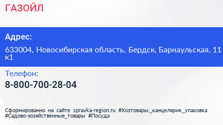 ГАЗОЙЛ по адресу 633004, Новосибирская область, Бердск, Барнаульская, 11 к1 в дальнейшем Организация, размещена в следующих категориях:
