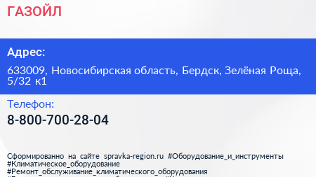 ГАЗОЙЛ по адресу 633009, Новосибирская область, Бердск, Зелёная Роща, 5/32 к1 в дальнейшем Организация, размещена в следующих категориях: