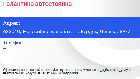 Галактика, автостоянка по адресу 633010, Новосибирская область, Бердск, Ленина, 89/7 в дальнейшем Организация, размещена в следующих категориях: