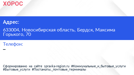 ХОРОС по адресу 633004, Новосибирская область, Бердск, Максима Горького, 70 в дальнейшем Организация, размещена в следующих категориях: