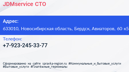 JDMservice, СТО по адресу 633010, Новосибирская область, Бердск, Авиаторов, 60 к5 в дальнейшем Организация, размещена в следующих категориях: