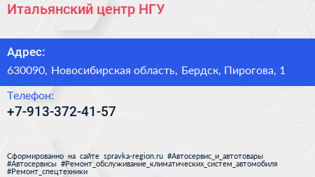 Итальянский центр, НГУ по адресу 630090, Новосибирская область, Бердск, Пирогова, 1 в дальнейшем Организация, размещена в следующих категориях: