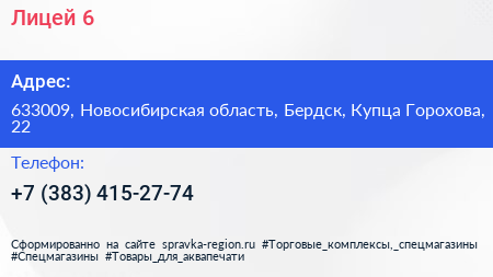 Лицей №6 по адресу 633009, Новосибирская область, Бердск, Купца Горохова, 22 в дальнейшем Организация, размещена в следующих категориях: