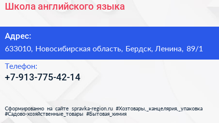 Школа английского языка по адресу 633010, Новосибирская область, Бердск, Ленина, 89/1 в дальнейшем Организация, размещена в следующих категориях: