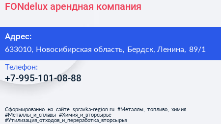 FONdelux, арендная компания по адресу 633010, Новосибирская область, Бердск, Ленина, 89/1 в дальнейшем Организация, размещена в следующих категориях: