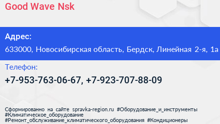 Good Wave Nsk по адресу 633000, Новосибирская область, Бердск, Линейная 2-я, 1а в дальнейшем Организация, размещена в следующих категориях: