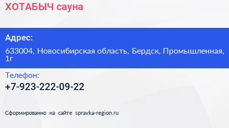 ХОТАБЫЧ, сауна по адресу 633004, Новосибирская область, Бердск, Промышленная, 1г в дальнейшем Организация, размещена в следующих категориях: