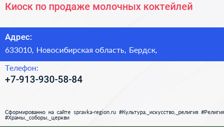 Киоск по продаже молочных коктейлей по адресу 633010, Новосибирская область, Бердск, в дальнейшем Организация, размещена в следующих категориях: