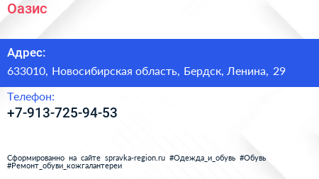 Оазис по адресу 633010, Новосибирская область, Бердск, Ленина, 29 в дальнейшем Организация, размещена в следующих категориях: