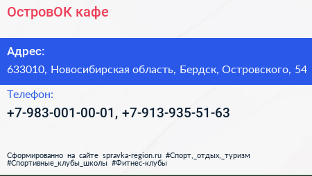 ОстровOК, кафе по адресу 633010, Новосибирская область, Бердск, Островского, 54 в дальнейшем Организация, размещена в следующих категориях: