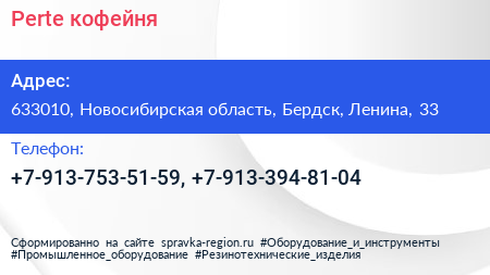 Perte, кофейня по адресу 633010, Новосибирская область, Бердск, Ленина, 33 в дальнейшем Организация, размещена в следующих категориях: