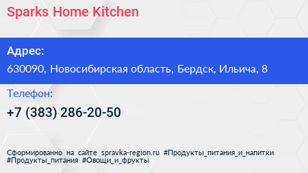 Sparks Home Kitchen по адресу 630090, Новосибирская область, Бердск, Ильича, 8 в дальнейшем Организация, размещена в следующих категориях: