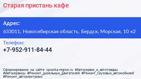 Старая пристань, кафе по адресу 633011, Новосибирская область, Бердск, Морская, 10 к2 в дальнейшем Организация, размещена в следующих категориях: