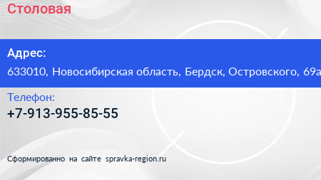 Столовая по адресу 633010, Новосибирская область, Бердск, Островского, 69а в дальнейшем Организация, размещена в следующих категориях: