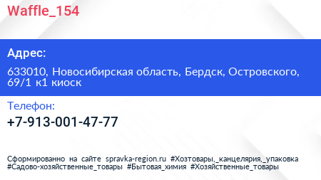 Waffle_154 по адресу 633010, Новосибирская область, Бердск, Островского, 69/1 к1 киоск в дальнейшем Организация, размещена в следующих категориях: