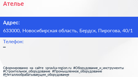 Ателье по адресу 633000, Новосибирская область, Бердск, Пирогова, 40/1 в дальнейшем Организация, размещена в следующих категориях: