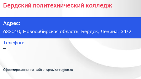 Бердский политехнический колледж по адресу 633010, Новосибирская область, Бердск, Ленина, 34/2 в дальнейшем Организация, размещена в следующих категориях: