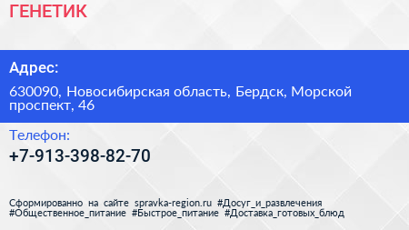 ГЕНЕТИК по адресу 630090, Новосибирская область, Бердск, Морской проспект, 46 в дальнейшем Организация, размещена в следующих категориях:
