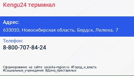 Kengu24, терминал по адресу 633010, Новосибирская область, Бердск, Лелюха, 7 в дальнейшем Организация, размещена в следующих категориях: