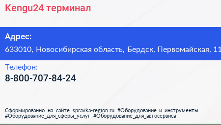 Kengu24, терминал по адресу 633010, Новосибирская область, Бердск, Первомайская, 11 в дальнейшем Организация, размещена в следующих категориях: