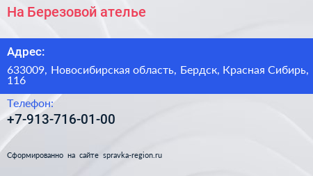 На Березовой, ателье по адресу 633009, Новосибирская область, Бердск, Красная Сибирь, 116 в дальнейшем Организация, размещена в следующих категориях:
