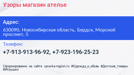 Узоры, магазин-ателье по адресу 630090, Новосибирская область, Бердск, Морской проспект, 5 в дальнейшем Организация, размещена в следующих категориях: