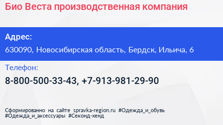 Био-Веста, производственная компания по адресу 630090, Новосибирская область, Бердск, Ильича, 6 в дальнейшем Организация, размещена в следующих категориях: