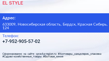 EL-STYLE по адресу 633009, Новосибирская область, Бердск, Красная Сибирь, 124 в дальнейшем Организация, размещена в следующих категориях:
