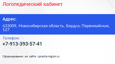 Логопедический кабинет по адресу 633009, Новосибирская область, Бердск, Первомайская, 127 в дальнейшем Организация, размещена в следующих категориях: