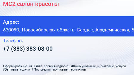 MC2, салон красоты по адресу 630090, Новосибирская область, Бердск, Академическая, 5 в дальнейшем Организация, размещена в следующих категориях: