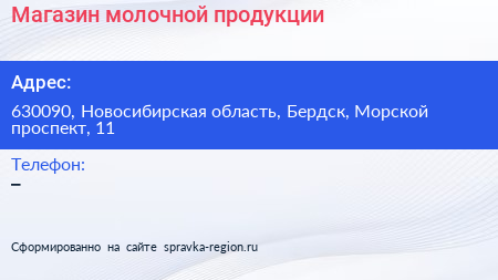 Магазин молочной продукции по адресу 630090, Новосибирская область, Бердск, Морской проспект, 11 в дальнейшем Организация, размещена в следующих категориях:
