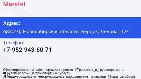 Marafet по адресу 633010, Новосибирская область, Бердск, Ленина, 42/1 в дальнейшем Организация, размещена в следующих категориях: