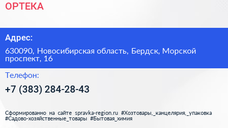 ОРТЕКА по адресу 630090, Новосибирская область, Бердск, Морской проспект, 16 в дальнейшем Организация, размещена в следующих категориях: