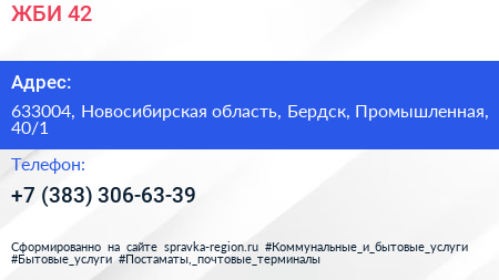 ЖБИ-42 по адресу 633004, Новосибирская область, Бердск, Промышленная, 40/1 в дальнейшем Организация, размещена в следующих категориях: