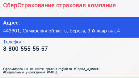 СберСтрахование, страховая компания по адресу 443901, Самарская область, Береза, 3-й квартал, 4 в дальнейшем Организация, размещена в следующих категориях:
