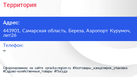 Территория по адресу 443901, Самарская область, Береза, Аэропорт Курумоч, лит26 в дальнейшем Организация, размещена в следующих категориях: