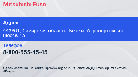 Mitsubishi Fuso по адресу 443901, Самарская область, Береза, Аэропортовское шоссе, 1а в дальнейшем Организация, размещена в следующих категориях: