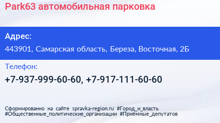 Park63, автомобильная парковка по адресу 443901, Самарская область, Береза, Восточная, 2Б в дальнейшем Организация, размещена в следующих категориях: