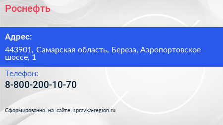 Роснефть по адресу 443901, Самарская область, Береза, Аэропортовское шоссе, 1 в дальнейшем Организация, размещена в следующих категориях: