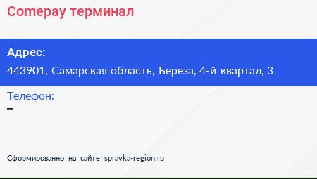 Comepay, терминал по адресу 443901, Самарская область, Береза, 4-й квартал, 3 в дальнейшем Организация, размещена в следующих категориях: